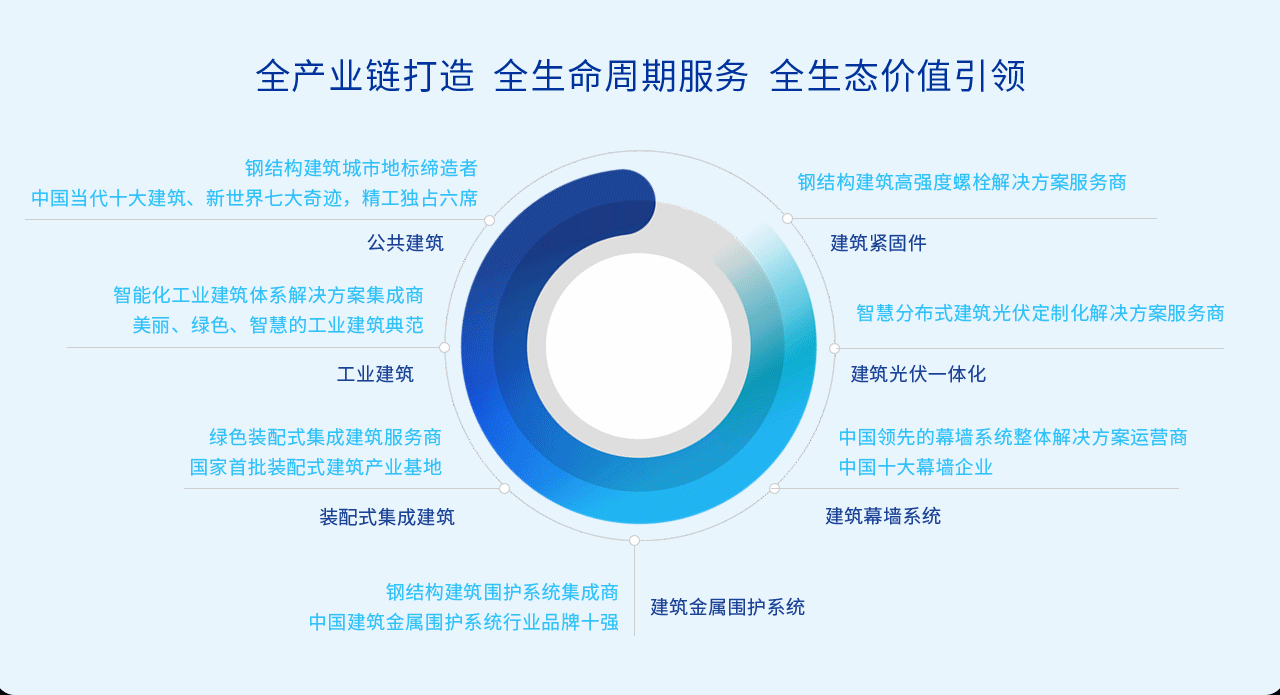 成立于1999年,集钢结构建筑研发、设计、制造、施工于一体。在全球打造了北京奥运“鸟巢”、北京大兴国际机场“凤凰”、世界杯主体育场“卢赛尔体育场”等一系列地标级工程,并积极推动技术创新与模式创新。旗下涵盖绿色公共建筑、绿色智慧工业建筑、绿色装配式建筑、绿色金属屋面、绿色幕墙等众多产业品牌,同时创新构建数字化平台,增强产业协同优势,持续引领行业发展。今天,精工钢构正逐步向创新的绿色、集成、低碳建筑转型,再次进入跨越发展的新里程。