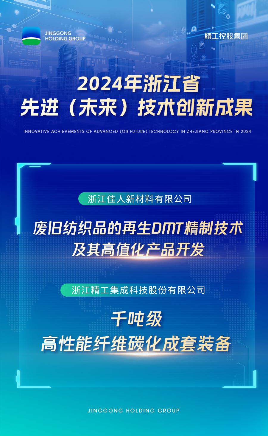 近日,浙江省经信厅公布2024年浙江省先进(未来)技术创新成果,精工旗下佳人新材料“废旧纺织品的再生DMT精制技术及其高值化产品开发”和精工科技“千吨级高性能纤维碳化成套装备”经申报推荐、专家评审、网上公示等环节成功入选。