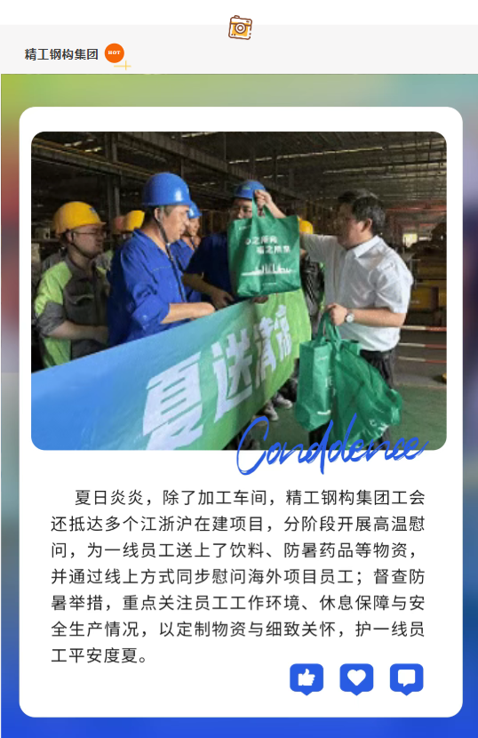精工控股集团工会与各子公司的“盛夏守护”也始终在线。连日来,精工已启动多项“高温送清凉”慰问行动,为一线的伙伴们提供物资关怀,筑牢安全防线。